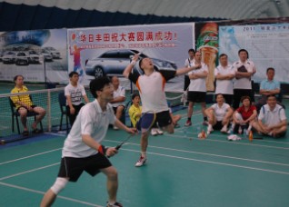 比賽首先進(jìn)行小組賽,接著(zhù)進(jìn)入淘汰賽,最后決出前三名,全程緊張激烈,精彩紛呈。場(chǎng)上健兒精神抖擻、全心投入、揮汗如雨,場(chǎng)下啦啦隊員加油助威、齊聲吶喊、熱情高漲。比賽中,參賽隊員們根據自己和對手的特點(diǎn)合理運用戰術(shù),揚己之長(cháng),克彼之短:有的組合看似身材不高,但體力絕佳,移動(dòng)靈活,防守能力極強,常常在與對手多拍相持的情況下,瞄準機會(huì ),轉守為攻,一擊絕殺;有的組合身材高大,力量超群,且不失靈活,比賽中利用優(yōu)勢,不斷進(jìn)行高點(diǎn)擊殺,經(jīng)常在幾拍之內便將對手斬落馬下;有的組合大小配對,一前一后,前者站位靠前,在保護前場(chǎng)的情況下,于網(wǎng)前截殺對手,后者則負責保護后場(chǎng),在調動(dòng)對手的同時(shí)伺機扣殺得分。賽場(chǎng)上,運動(dòng)員們斗智斗勇,各出奇招,八仙過(guò)海,各顯神通:時(shí)而網(wǎng)前小球急速來(lái)回,反應靈敏,讓人眼花繚亂;時(shí)而發(fā)球偷襲后場(chǎng),出其不意,虛實(shí)相生;時(shí)而調整戰術(shù),加快節奏,后場(chǎng)突擊殺斜線(xiàn);時(shí)而躍起騰空,接連劈殺,酣暢淋漓……隨著(zhù)比賽的逐步深入,選手們由于連續作戰,早已汗流浹背,雖略顯疲憊,但在及時(shí)補充水分,更換戰服之后,一進(jìn)賽場(chǎng)立即又精神飽滿(mǎn),情緒高漲,繼續拼殺。運動(dòng)員們在球場(chǎng)上激情四射,贏(yíng)得了觀(guān)眾們陣陣熱烈的掌聲,球館內的熱情完全被點(diǎn)燃。