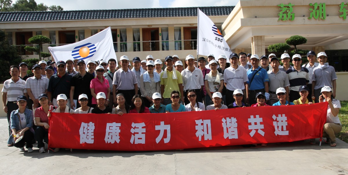 下午4點(diǎn),集團總部全體員工和小梅沙旅游中心中層以上管理人員分別到達西麗果場(chǎng),大家高舉著(zhù)特發(fā)集團司旗和“健康活力,和諧共進(jìn)”的標語(yǔ)集體合影,小梅沙旅游中心朱振聲總經(jīng)理簡(jiǎn)短講話(huà)后,活動(dòng)開(kāi)始。大家向著(zhù)果園進(jìn)發(fā),成熟的荔枝早就掛滿(mǎn)枝頭,品嘗佳果,大家心情像荔枝一樣甜蜜。從果園出來(lái)后,大家來(lái)到西麗湖畔,開(kāi)展團隊游戲。集團總部和小梅沙旅游中心分別組隊參與了3個(gè)團隊合作的游戲項目。雖然只是簡(jiǎn)單的游戲,但大家都十分認真,分發(fā)揚團隊合作精神,每個(gè)游戲都積極討論致勝之術(shù),全情投入。集團張俊林董事長(cháng)全程都和大家一起參與荔枝采摘活動(dòng)和游戲項目。在歡聲笑語(yǔ)中,大家一掃平時(shí)工作中緊張的情緒,放飛心情,享受著(zhù)難得的輕松與閑適。最后大家手挽手肩并肩高歌一曲《真心英雄》,圓滿(mǎn)結束了這次戶(hù)外活動(dòng)。