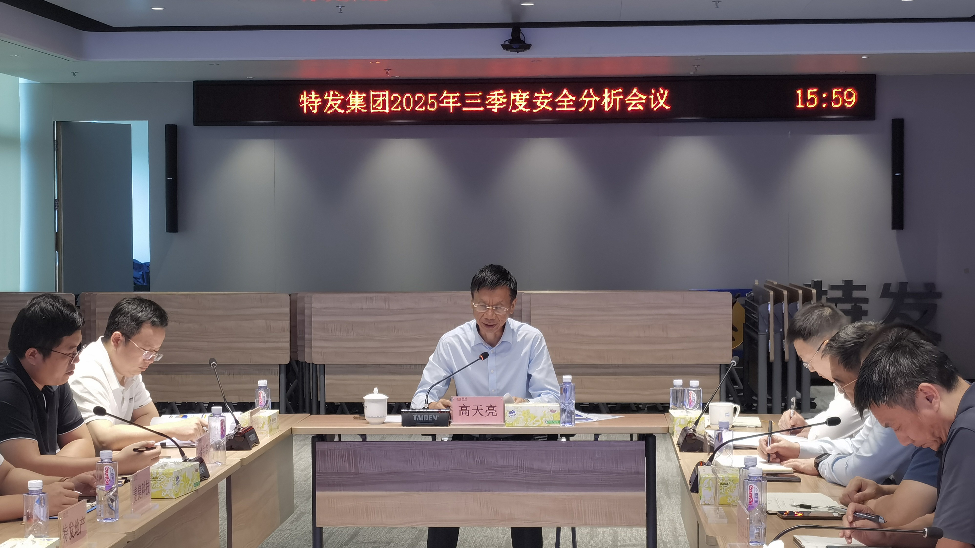 2025年9月25日下午,特發(fā)集團召開(kāi)2025年第三季度安全分析會(huì )。集團總裁、安委會(huì )主任高天亮出席會(huì )議并講話(huà),集團副總裁、安全總監李承主持會(huì )議。集團安委辦、各企業(yè)主要負責人、分管安全工作領(lǐng)導及安全管理部門(mén)負責人參會(huì )。會(huì )議復盤(pán)了前期安全工作的成效與不足,充分研判當前風(fēng)險形勢,部署四季度重點(diǎn)防控任務(wù),進(jìn)一步壓緊壓實(shí)各級安全管理責任。